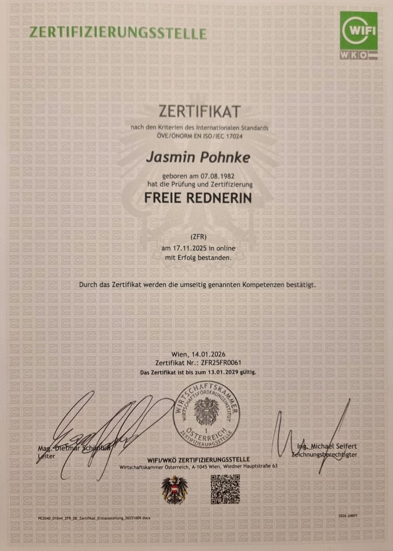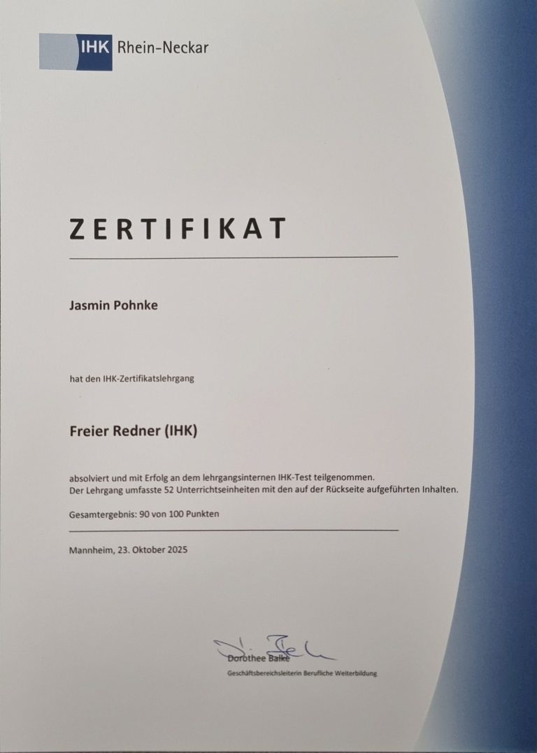 Zertifikat "Freie Rednerin (IHK)"